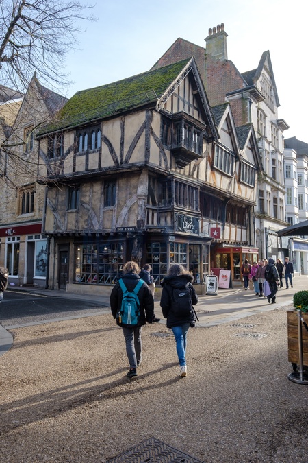 Very old half timbered building still in use on Shiop Street by Cornmarket street.Oxford, Oxfordshire . United Kingdom. 25 January 2024, Credit:Mark Fairhurst / Avalon