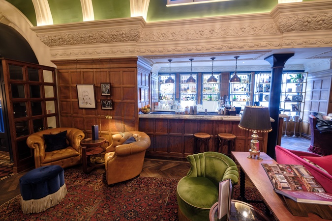 The Morse bar, in the Randolph hotel. So named after the detctive played by John Thaw.Oxford, Oxfordshire . United Kingdom. 25 January 2024, Credit:Mark Fairhurst / Avalon