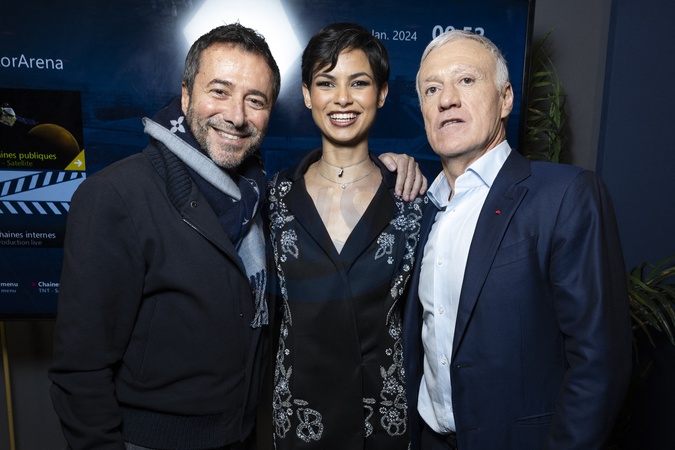 Exclusif - Bernard Montiel, Eve Gilles, Miss France 2024, Didier Deschamps - Backstage - Concert événement "Le gala des pièces jaunes" à l'Accor Arena Paris le 26 janvier 2024. Une soirée de gala exceptionnelle en faveur desPièces Jaunes !De nombreux artistes se succèderont pour chanter pour les enfants et adolescents hospitalisés. © Cyril Moreau / Guillaume Gaffiot / Bestimage Exclusive - No web en Suisse / Belgique Concert event "Le gala des pièces jaunes" at the Accor Arena Paris on 26 January 2024. An exceptional gala evening in aid of the Pièces Jaunes! A host of artists will perform for children and teenagers in hospital.