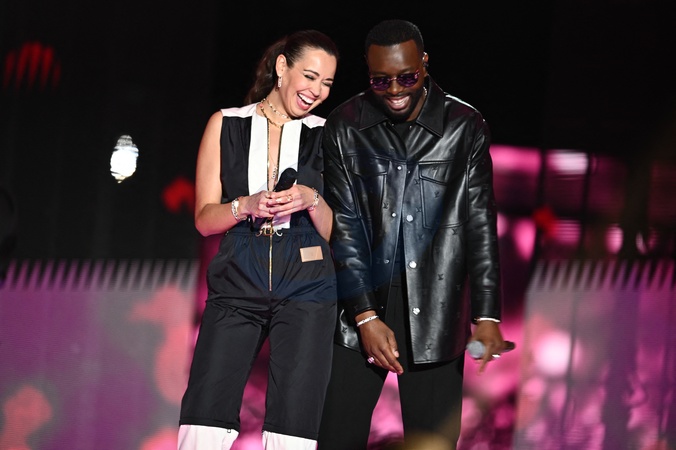 Exclusif - Nadine Sierra et Gims - Scène - Concert événement "Le gala des pièces jaunes" à l'Accor Arena Paris le 26 janvier 2024. Une soirée de gala exceptionnelle en faveur desPièces Jaunes !De nombreux artistes se succèderont pour chanter pour les enfants et adolescents hospitalisés. © Guillaume Gaffiot / Cyril Moreau / Bestimage Exclusive - No web en Suisse / Belgique Concert event "Le gala des pièces jaunes" at the Accor Arena Paris on 26 January 2024. An exceptional gala evening in aid of the Pièces Jaunes! A host of artists will perform for children and teenagers in hospital.