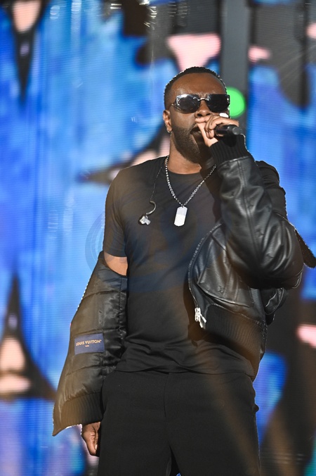 Exclusif - Gims - Scène - Concert événement "Le gala des pièces jaunes" à l'Accor Arena Paris le 26 janvier 2024. Une soirée de gala exceptionnelle en faveur desPièces Jaunes !De nombreux artistes se succèderont pour chanter pour les enfants et adolescents hospitalisés. © Guillaume Gaffiot / Cyril Moreau / Bestimage Exclusive - No web en Suisse / Belgique Concert event "Le gala des pièces jaunes" at the Accor Arena Paris on 26 January 2024. An exceptional gala evening in aid of the Pièces Jaunes! A host of artists will perform for children and teenagers in hospital.