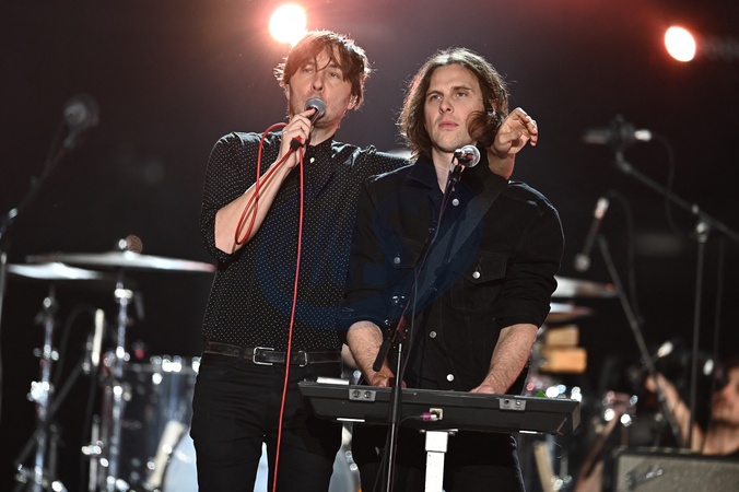 Exclusif - Le groupe Phoenix - Thomas Mars - Scène - Concert événement "Le gala des pièces jaunes" à l'Accor Arena Paris le 26 janvier 2024. Une soirée de gala exceptionnelle en faveur desPièces Jaunes !De nombreux artistes se succèderont pour chanter pour les enfants et adolescents hospitalisés. © Guillaume Gaffiot / Cyril Moreau / Bestimage Exclusive - No web en Suisse / Belgique Concert event "Le gala des pièces jaunes" at the Accor Arena Paris on 26 January 2024. An exceptional gala evening in aid of the Pièces Jaunes! A host of artists will perform for children and teenagers in hospital.