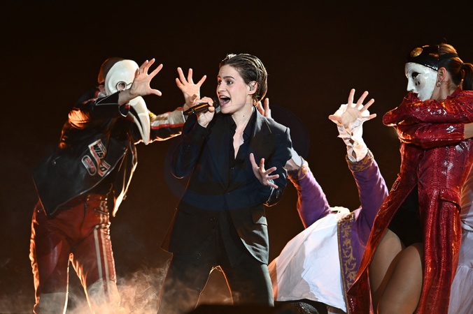 Exclusif - Christine and the queen - Scène - Concert événement "Le gala des pièces jaunes" à l'Accor Arena Paris le 26 janvier 2024. Une soirée de gala exceptionnelle en faveur desPièces Jaunes !De nombreux artistes se succèderont pour chanter pour les enfants et adolescents hospitalisés. © Guillaume Gaffiot / Cyril Moreau / Bestimage Exclusive - No web en Suisse / Belgique Concert event "Le gala des pièces jaunes" at the Accor Arena Paris on 26 January 2024. An exceptional gala evening in aid of the Pièces Jaunes! A host of artists will perform for children and teenagers in hospital.