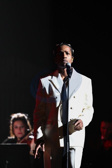 Exclusif - Asap Rocky - Scène - Concert événement "Le gala des pièces jaunes" à l'Accor Arena Paris le 26 janvier 2024. Une soirée de gala exceptionnelle en faveur desPièces Jaunes !De nombreux artistes se succèderont pour chanter pour les enfants et adolescents hospitalisés. © Guillaume Gaffiot / Cyril Moreau / Bestimage Exclusive - No web en Suisse / Belgique Concert event "Le gala des pièces jaunes" at the Accor Arena Paris on 26 January 2024. An exceptional gala evening in aid of the Pièces Jaunes! A host of artists will perform for children and teenagers in hospital.