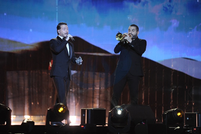 Exclusif - Ibrahim Maalouf et J Balvin - Scène - Concert événement "Le gala des pièces jaunes" à l'Accor Arena Paris le 26 janvier 2024. Une soirée de gala exceptionnelle en faveur desPièces Jaunes !De nombreux artistes se succèderont pour chanter pour les enfants et adolescents hospitalisés. © Guillaume Gaffiot / Cyril Moreau / Bestimage Exclusive - No web en Suisse / Belgique Concert event "Le gala des pièces jaunes" at the Accor Arena Paris on 26 January 2024. An exceptional gala evening in aid of the Pièces Jaunes! A host of artists will perform for children and teenagers in hospital.