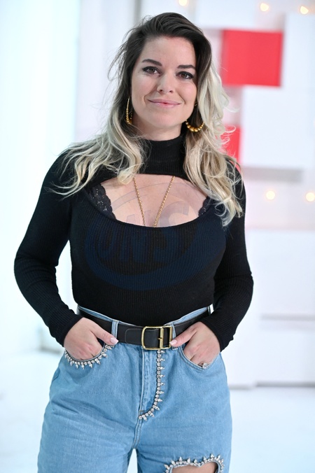 Info - Sophie Tapie a accouché de son premier enfant, César - Info du 2 septembre 2023 - Sophie Tapie enceinte de son premier enfant - Divorce - Sophie Tapie divorce de Jean-Mathieu Marinetti - Exclusif - Sophie Tapie - Enregistrement de l'émission "Vivement Dimanche prochain" présentée par M.Drucker et diffusée le 1er mai sur France 2. Le 16 avril 2022 © Guillaume Gaffiot / Bestimage Exclusive - No Web No Blog pour Belgique et Suisse