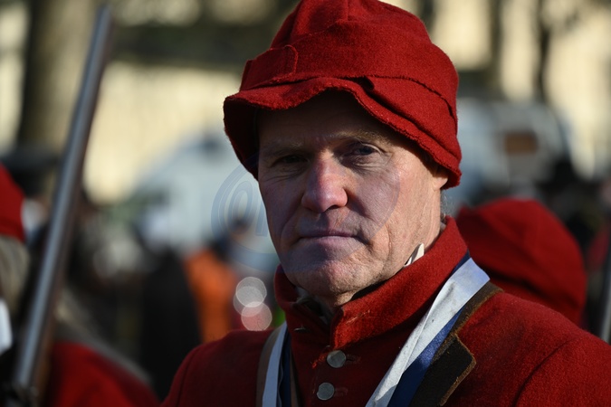 English Civil War reenactors march along The Mall to Horseguards in London, UK, on 28th January, 2024