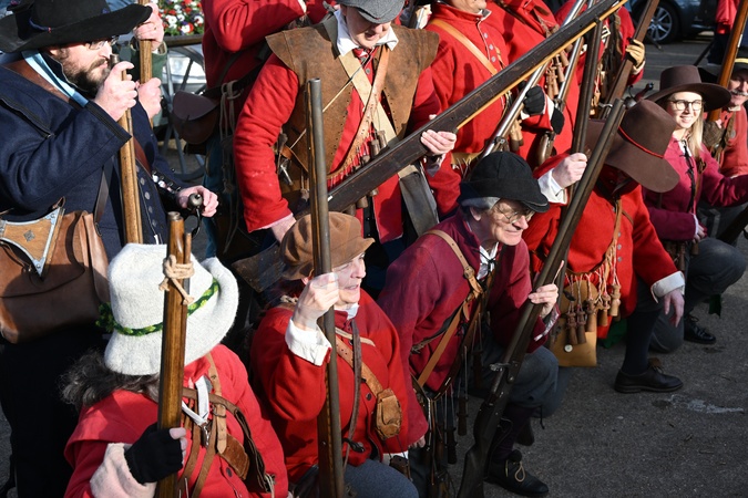 Rekonstruktorzy angielskiej wojny domowej maszerują wzdłuż centrum handlowego do Horseguards w Londynie, Wielka Brytania, 28 stycznia 2024 r.