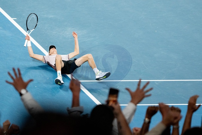 Jannik Sinner (ITA) - J.Sinner remporte la finale de l'Open d'Australie en battant D.Medvedev (3-6, 3-6, 6-4, 6-4, 6-3) à Melbourne, le 28 janvier 2024. © Virginie Bouyer / Panoramic / Bestimage J.Sinner wins the final of the Australian Open by beating D.Medvedev (3-6, 3-6, 6-4, 6-4, 6-3) in Melbourne, January 28, 2024