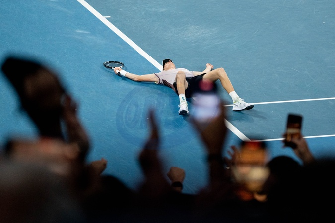 Jannik Sinner (ITA) - J.Sinner remporte la finale de l'Open d'Australie en battant D.Medvedev (3-6, 3-6, 6-4, 6-4, 6-3) à Melbourne, le 28 janvier 2024. © Virginie Bouyer / Panoramic / Bestimage J.Sinner wins the final of the Australian Open by beating D.Medvedev (3-6, 3-6, 6-4, 6-4, 6-3) in Melbourne, January 28, 2024