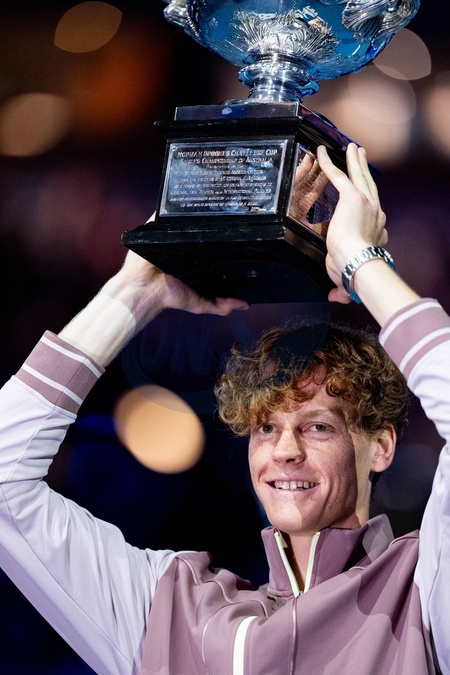 Jannik Sinner (ITA) - J.Sinner remporte la finale de l'Open d'Australie en battant D.Medvedev (3-6, 3-6, 6-4, 6-4, 6-3) à Melbourne, le 28 janvier 2024. © Virginie Bouyer / Panoramic / Bestimage J.Sinner wins the final of the Australian Open by beating D.Medvedev (3-6, 3-6, 6-4, 6-4, 6-3) in Melbourne, January 28, 2024