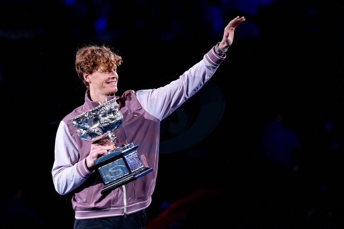 Jannik Sinner (ITA) - J.Sinner remporte la finale de l'Open d'Australie en battant D.Medvedev (3-6, 3-6, 6-4, 6-4, 6-3) à Melbourne, le 28 janvier 2024. © Virginie Bouyer / Panoramic / Bestimage J.Sinner wins the final of the Australian Open by beating D.Medvedev (3-6, 3-6, 6-4, 6-4, 6-3) in Melbourne, January 28, 2024