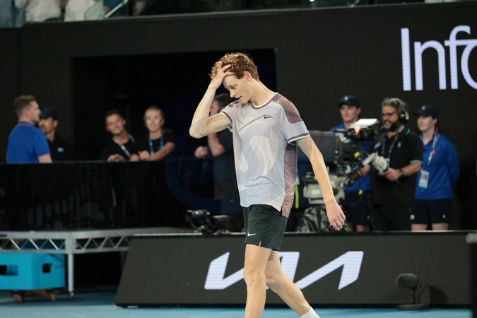Jannik Sinner - J.Sinner remporte la finale de l'Open d'Australie en battant Daniil Medvedev (3-6, 3-6, 6-4, 6-4, 6-3) à Melbourne, le 28 janvier 2024. © Panoramic / Bestimage J.Sinner wins the final of the Australian Open by beating D.Medvedev (3-6, 3-6, 6-4, 6-4, 6-3) in Melbourne, January 28, 2024