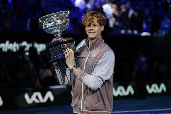 Jannik Sinner - J.Sinner remporte la finale de l'Open d'Australie en battant Daniil Medvedev (3-6, 3-6, 6-4, 6-4, 6-3) à Melbourne, le 28 janvier 2024. © Panoramic / Bestimage J.Sinner wins the final of the Australian Open by beating D.Medvedev (3-6, 3-6, 6-4, 6-4, 6-3) in Melbourne, January 28, 2024