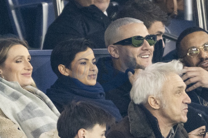 Eve Gilles, Miss France 2024, DJ Snake et Malik Bentalha - Celébrités dans les tribunes du match de Ligue 1 Uber Eats "PSG-Brest" (2-2) au Parc des Princes à Paris le 28 janvier 2024. © Cyril Moreau/Bestimage Celebrities in the stands of the Ligue 1 Uber Eats match "PSG-Brest" (2-2) at the Parc des Princes in Paris on January 28, 2024.