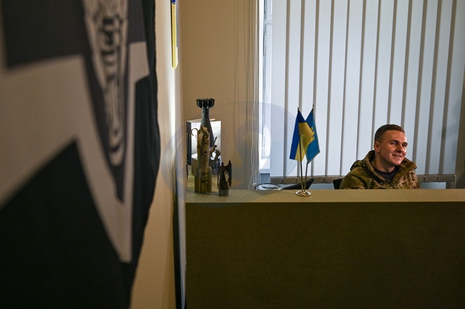 LVIV, UKRAINE - JANUARY 26, 2024 - The first recruiting center of the 1st separate battalion "Da Vinci Wolves" named after Dmytro Kotsiubailo has been opened on Ploshcha Anheliv Square, opposite the Garrison Church, Lviv, western Ukraine., Credit:Anastasiia Smolienko / Avalon