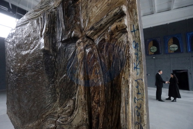 KYIV, UKRAINE - JANUARY 26, 2024 - A monumental relief by a Ukrainian artist Oleksandr Zhyvotkov presented during the opening of the exhibition project "Through the Living" dedicated to the International Holocaust Remembrance Day at the Living Memory Exhibition Center in Babyn Yar, Kyiv, capital of Ukraine., Credit:Yuliia Ovsiannikova / Avalon