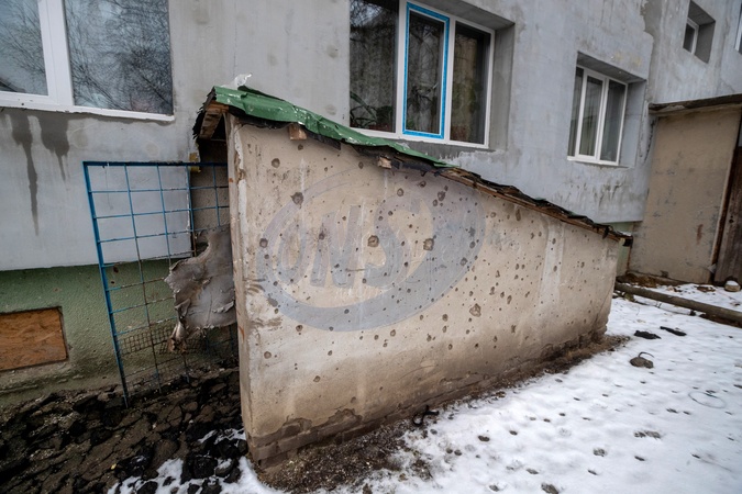 BUCHA, UKRAINE - JANUARY 24, 2024 - In a residential apartment building on Nove Shose Street, damaged by Russian shelling, work is underway to overhaul the facade, Bucha, Kyiv region, north-central Ukraine., Credit:Pavlo_Bagmut / Avalon