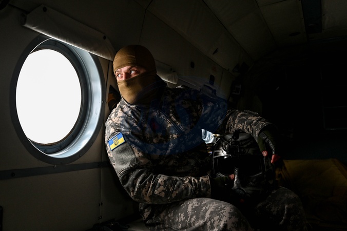 UKRAINE - JANUARY 24, 2024 - A serviceman of the 11th separate army aviation brigade "Kherson" of the Armed Forces of Ukraine looks through the helicopter window, Ukraine., Credit:Dmytro Smolienko / Avalon