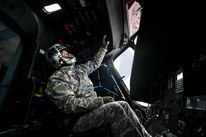 UKRAINE - JANUARY 24, 2024 - A serviceman of the 11th separate army aviation brigade "Kherson" of the Armed Forces of Ukraine is seen in the helicopter cockpit, Ukraine., Credit:Dmytro Smolienko / Avalon