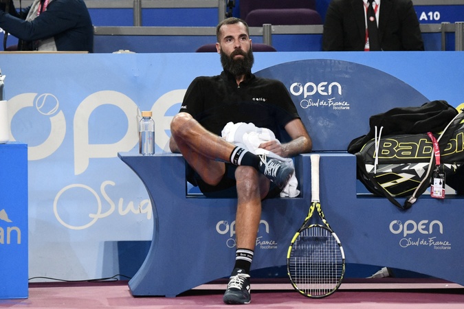 MONTPELLIER, FRANCE - JANUARY 29 : Benoit PAIRE (FRA) during the 1st round of the ATP 250 Open Sud de France tournament against Andy MURRAY (GBR) in Montpellier, France on January 29th, 2024.