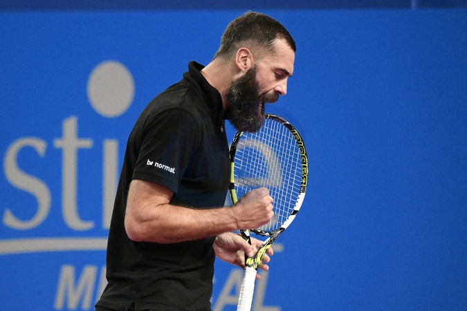 MONTPELLIER, FRANCE - JANUARY 29 : Benoit PAIRE (FRA) celebration during the 1st round of the ATP 250 Open Sud de France tournament against Andy MURRAY (GBR) in Montpellier, France on January 29th, 2024.
