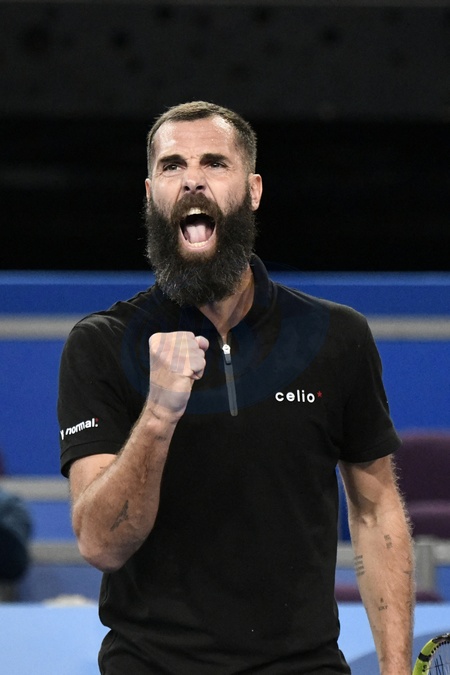 MONTPELLIER, FRANCE - JANUARY 29 : Benoit PAIRE (FRA) celebration during the 1st round of the ATP 250 Open Sud de France tournament against Andy MURRAY (GBR) in Montpellier, France on January 29th, 2024.