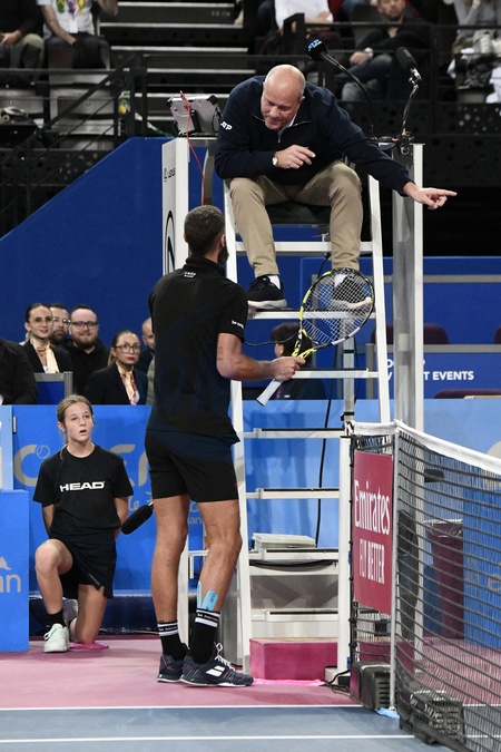 MONTPELLIER, FRANCE - JANUARY 29 : Benoit PAIRE (FRA) argues with judge during the 1st round of the ATP 250 Open Sud de France tournament against Andy MURRAY (GBR) in Montpellier, France on January 29th, 2024.