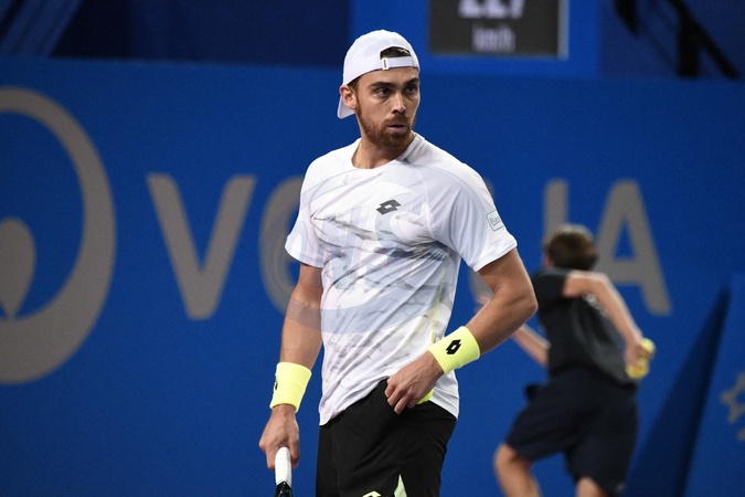 MONTPELLIER, FRANCE - JANUARY 29 : Benjamin BONZI (FRA) during the 1st round of the ATP 250 Open Sud de France tournament in Montpellier, France on January 29th, 2024.