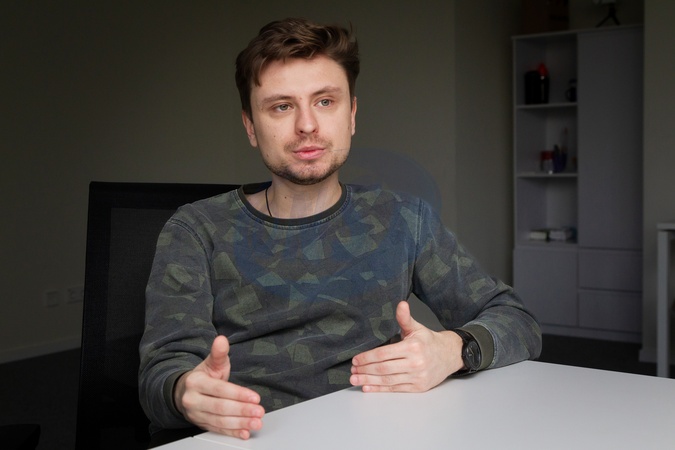 KYIV, UKRAINE - JANUARY 24, 2024 - Lobby X CEO Vladyslav Greziev speaks to a correspondent of the Ukrinform National News Agency of Ukraine, Kyiv, capital of Ukraine. Lobby X is a Ukrainian employment platform and recruitment agency which also recruits for the Defence Forces., Credit:Kirill Chubotin / Avalon