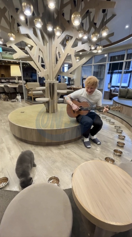 Screenshot of Ed Sheeran, latest post on social media, 30th January 2024.Quote:"Trying to win over the same kitties that ran away from me in 2014, same results.", Credit:B4859 / Avalon