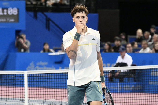 MONTPELLIER, FRANCE - JANUARY 30 : Arthur CAZAUX (FRA) during the 1st round of the ATP 250 Open Sud de France tournament vs. Maximilian MARTERER (GBR) in Montpellier, France on January 30th, 2024.