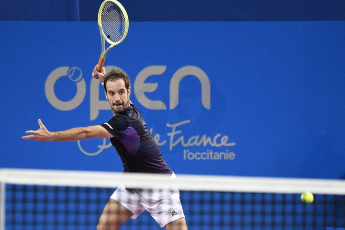 MONTPELLIER, FRANCE - JANUARY 30 : Richard GASQUET (FRA) during the 1st round of the ATP 250 Open Sud de France tournament vs. Pablo LLAMAS RUIZ (ESP) in Montpellier, France on January 30th, 2024.