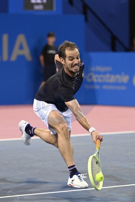 MONTPELLIER, FRANCE - JANUARY 30 : Richard GASQUET (FRA) during the 1st round of the ATP 250 Open Sud de France tournament vs. Pablo LLAMAS RUIZ (ESP) in Montpellier, France on January 30th, 2024.