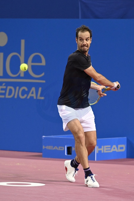 MONTPELLIER, FRANCE - JANUARY 30 : Richard GASQUET (FRA) during the 1st round of the ATP 250 Open Sud de France tournament vs. Pablo LLAMAS RUIZ (ESP) in Montpellier, France on January 30th, 2024.