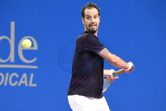 MONTPELLIER, FRANCE - JANUARY 30 : Richard GASQUET (FRA) during the 1st round of the ATP 250 Open Sud de France tournament vs. Pablo LLAMAS RUIZ (ESP) in Montpellier, France on January 30th, 2024.