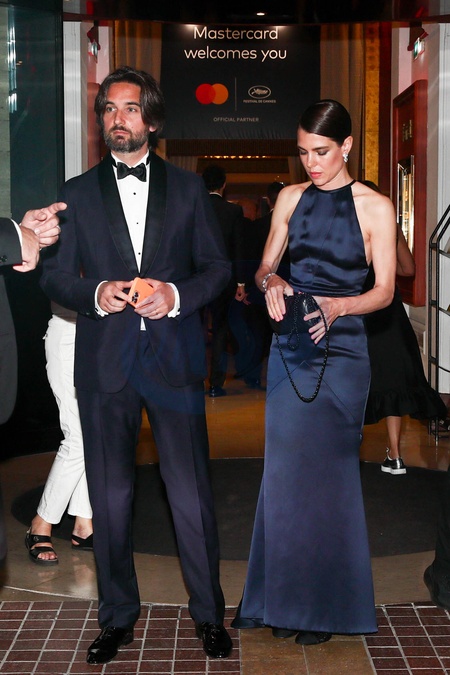 Exclusif - Charlotte Casiraghi et son mari Dimitri Rassam sortent de l'hôtel Majestic pour aller à la montée des marches du film « Frère et Soeur » lors du 75ème Festival International du Film de Cannes
