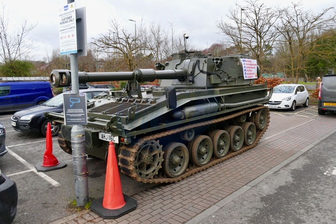 The 1963 decommissioned Abbot self propelled gun tank parked in protest outside the Wickes store in Basingstoke. A man who parked a tank in protest outside the Basingstoke Wickes store has been warned that it will be removed or destroyed, but he has vowed to keep it there.Paul Gibbons from nearby village Kingsclere parked the vehicle outside Wickes in Basingstoke in December in protest against the company which installed his kitchen in February 2023. The 63 year old has demanded a refund from Wickes for his poor quality £25,000 kitchen installation at his home, which he claims has been plagued with issues including mould under the sink, to badly fitting units with a poor finish, and one heavy drawer nearly collapsing on his dog.Mr Gibbons parked the huge vehicle a 1963 decommissioned Abbot self-propelled gun which he borrowed from a friend who lends it to people who want to protest against big companies. However, a sign has now been posted on the vehicle warning that it will be removed ‘within 14 days' of the date of the notice, Credit:Geoffrey Swaine / Avalon