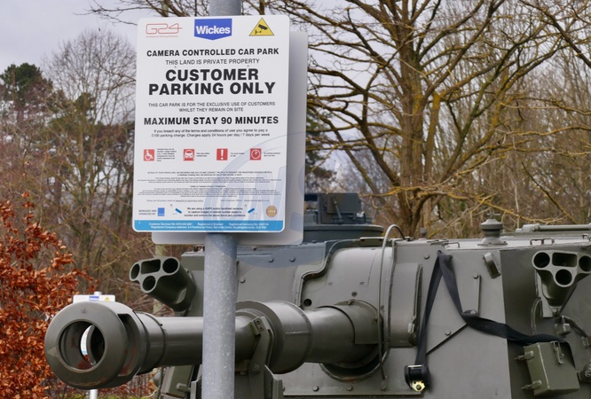 Mężczyzna w ramach protestu zaparkował czołg przed sklepem Basingstoke Wickes