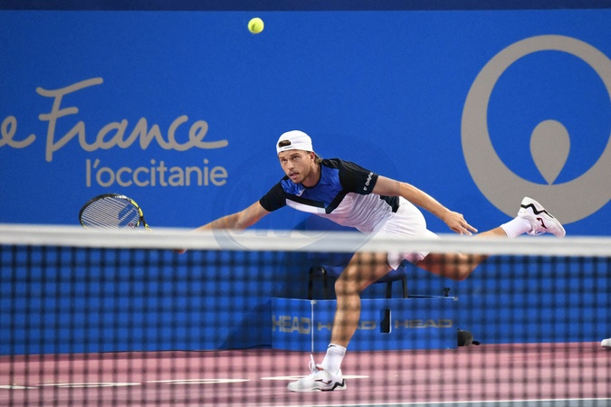 Alexandre MULLER (FRA) - A.Muller battu par M.Mmoh (6-4, 6-4) lors de l'Open de tennis de Montpellier, le 31 janvier 2024. © Valentina Claret / Panoramic / Bestimage A.Muller defeated by M.Mmoh (6-4, 6-4) during the Montpellier Tennis Open, January 31, 2024.
