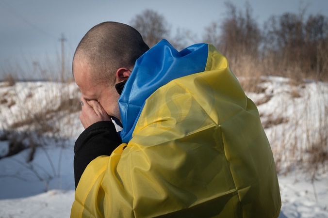 Des soldats ukrainiens de retour chez eux, à la suite d'un échange de prisonniers de guerre entre la Russie et l'Ukraine, le 31 janvier 2024. Cet échange était le 50ème retour de prisonniers de guerre et concernait 207 défenseurs ukrainiens. Ukrainian soldiers returning home, following a prisoner of war exchange between Russia and Ukraine, January 31, 2024. This exchange was the 50th return of prisoners of war and involved 207 Ukrainian defenders.
