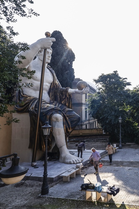 Rome, Musei Capitolini. - The colossus of Emperor Constantine was reconstructed by Fondazione Prada, Factum Foundation and the Capitoline museum. The statue, twelve meters high, arrived from Milan: the final installation work is underway and it will then be exhibited to the public next to the original fragments, ten in total. These include the face, the hand with the index finger also pointing towards the sky, the emperor's foot, the elbow. From these we started to create the reproduction of the statue which is a facsimile in polyurethane treated with layers of resin. But the most surprising thing is to discover that it was made with 3D printing.The reconstruction is a hypothesis by the historian and archaeologist Salvatore Settis, curator of the Recycling Beauty exhibition presented last year at the Prada Foundation in Milan, while the recomposition is by Factum Foundation for Digital Technology in Preservation. 01/02/2024, Credit:Riccardo De Luca / Avalon