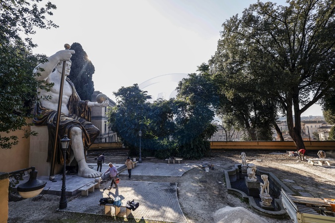 Rome, Musei Capitolini. - The colossus of Emperor Constantine was reconstructed by Fondazione Prada, Factum Foundation and the Capitoline museum. The statue, twelve meters high, arrived from Milan: the final installation work is underway and it will then be exhibited to the public next to the original fragments, ten in total. These include the face, the hand with the index finger also pointing towards the sky, the emperor's foot, the elbow. From these we started to create the reproduction of the statue which is a facsimile in polyurethane treated with layers of resin. But the most surprising thing is to discover that it was made with 3D printing.The reconstruction is a hypothesis by the historian and archaeologist Salvatore Settis, curator of the Recycling Beauty exhibition presented last year at the Prada Foundation in Milan, while the recomposition is by Factum Foundation for Digital Technology in Preservation. 01/02/2024, Credit:Riccardo De Luca / Avalon