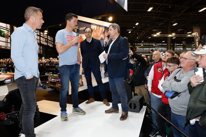 Sébastien Loeb (fra), LURQUIN Fabian, Deschaux Nicolas, président de la FFSA,for the Sébastien Loeb's 50 th anniversary during the Retromobile mototorshow 2024 at the Paris Expo Porte de Versailles, on January 31th 2024 in Paris, France. © Frédéric Le Floc'h/DPPI/Panoramic/Bestimage
