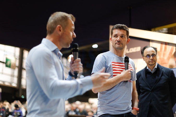 Sébastien Loeb fête ses 50 ans lors du salon Rétromobile 2024 au Paris Expo Porte de Versailles à Paris