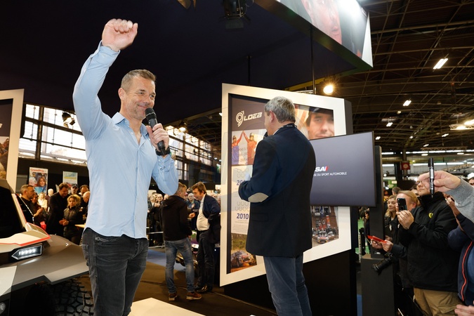 Sébastien Loeb fête ses 50 ans lors du salon Rétromobile 2024 au Paris Expo Porte de Versailles à Paris
