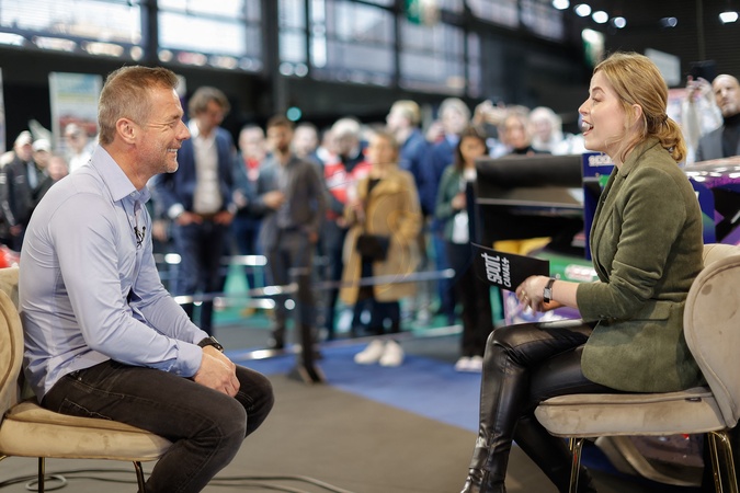 Sébastien Loeb fête ses 50 ans lors du salon Rétromobile 2024 au Paris Expo Porte de Versailles à Paris