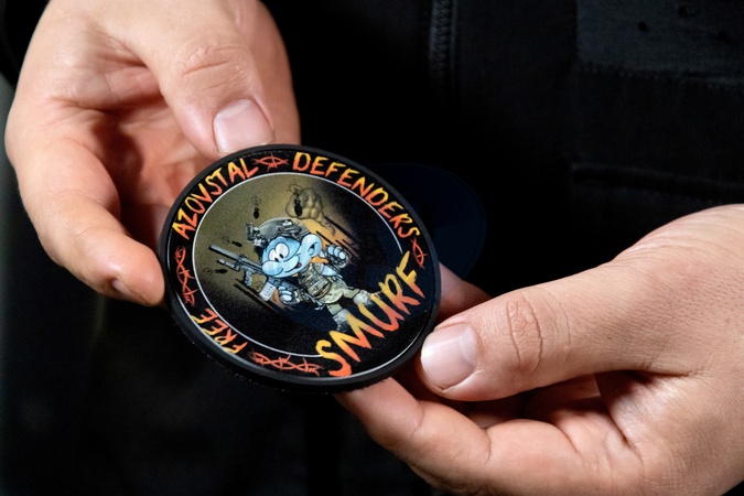 KYIV, UKRAINE - JANUARY 29, 2024 - Chevron of Azovstal defender and a Mariupol resident Illia Iliashenko, call sign "Smurf", is pictured during the recording of the program "Kramatorsk Station", a joint project of Ukrinform and the Center for Countering Disinformation, Kyiv, capital of Ukraine., Credit:Pavlo_Bagmut / Avalon