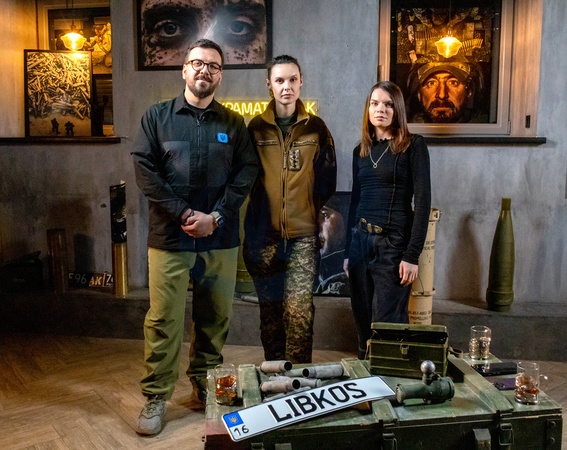 KYIV, UKRAINE - JANUARY 29, 2024 - A servicewoman of the National Guard of Ukraine Khrystyna, call sign "Kudriava" (C), hosts Kostiantyn and Vlada Liberov pose for a picture after the recording of the program "Kramatorsk Station", a joint project between Ukrinform and the Center for Countering Disinformation, Kyiv, capital of Ukraine., Credit:Pavlo_Bagmut / Avalon