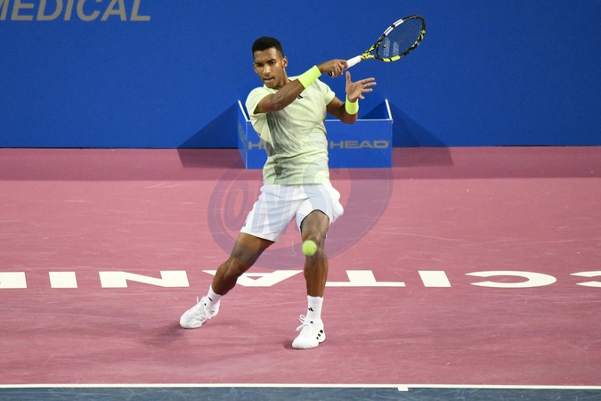 MONTPELLIER, FRANCE - FEBRUARY 1 : Felix AUGER-ALIASSIME (CAN) during the 2nd round of the ATP 250 Open Sud de France tournament vs. Arthur CAZAUX (FRA) in Montpellier, France on February 1st, 2024.